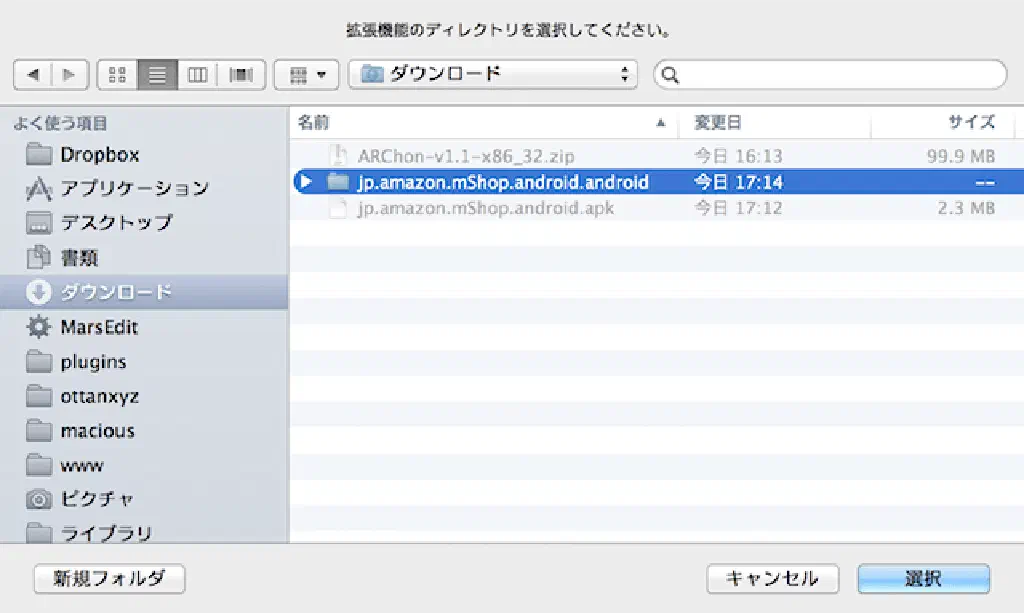 chromeos-apkコマンド実行後に作成されたフォルダーを選択してください。