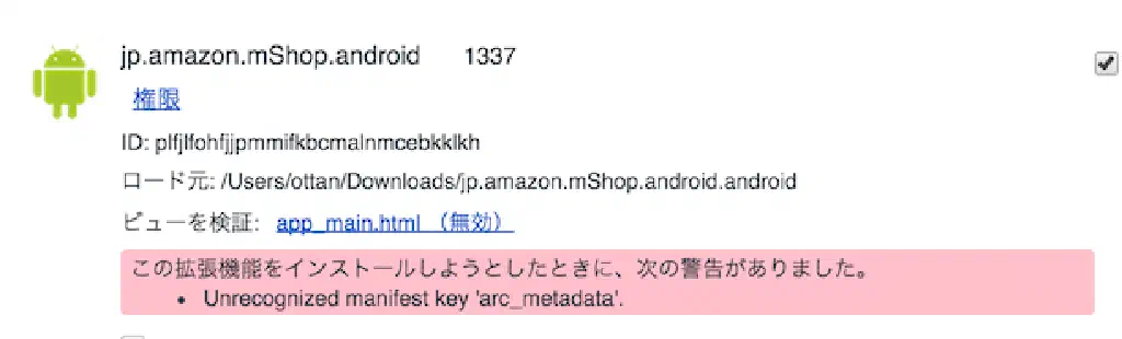 apkファイルを拡張機能としてChromeに登録するコマンド