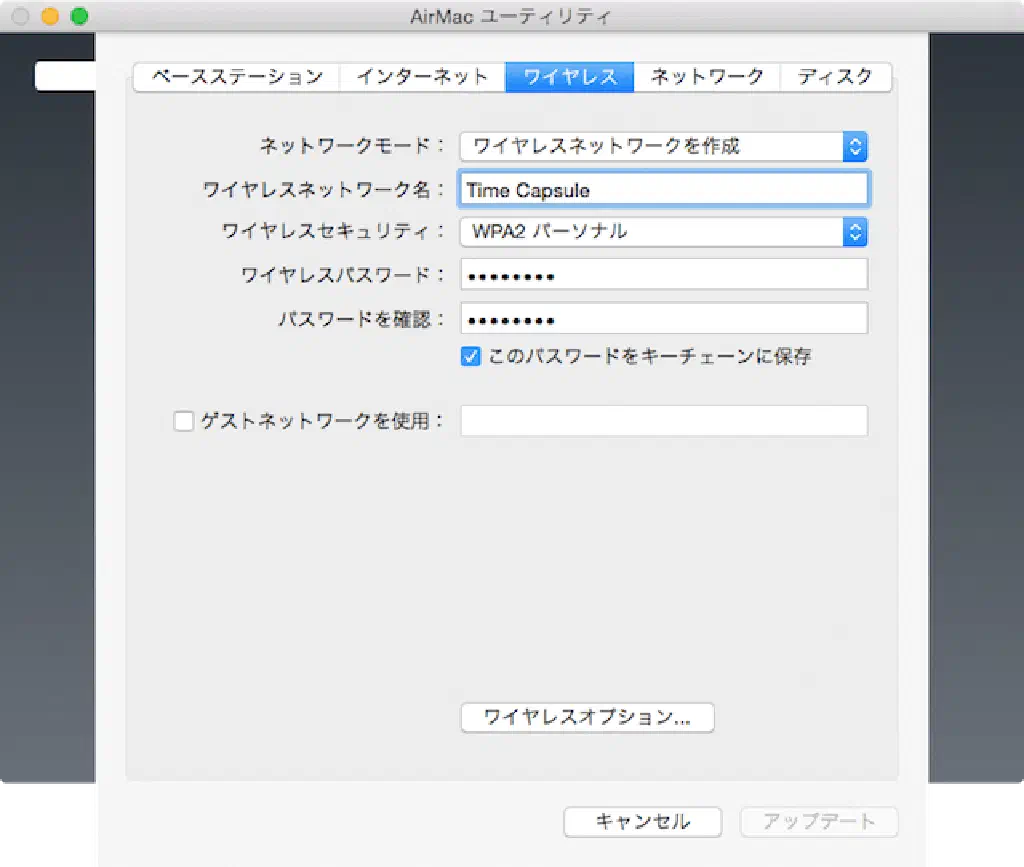 5GHz帯のWi-Fiネットワークを作成する方法(Time Caplsule)