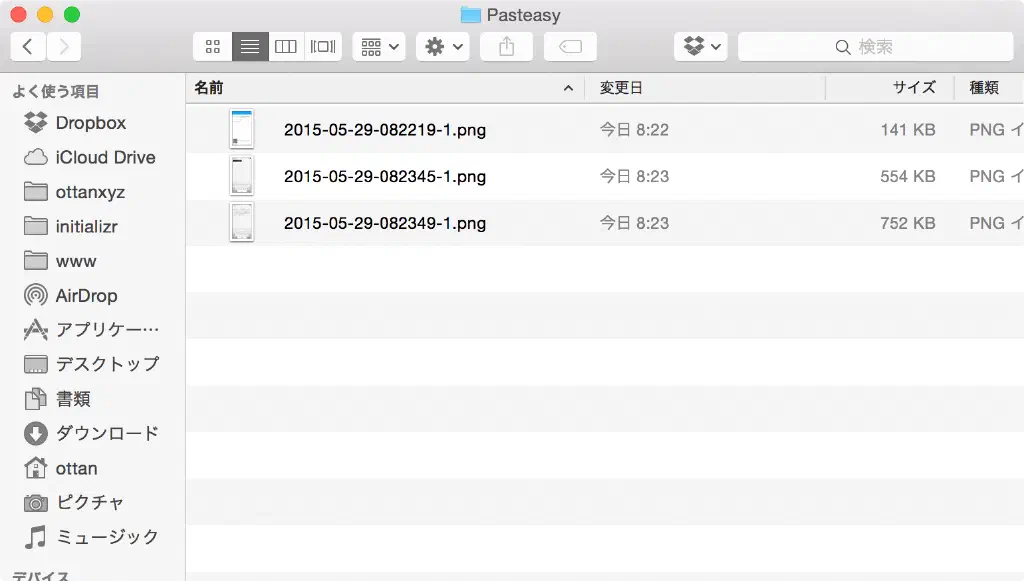 「Pasteasy」では、iPhone で撮影したスクリーンショットを、自動的に同期し、「ピクチャ」フォルダーに自動生成される「Pasteasy」に保存してくれます。ブログでスクリーンショットを多用する場合は、非常に便利な機能です。iPhone でたまったスクリーンショットは、iPhone の写真ライブラリからスクリーンショットだけを削除できる「Screenshots」で削除しましょう。