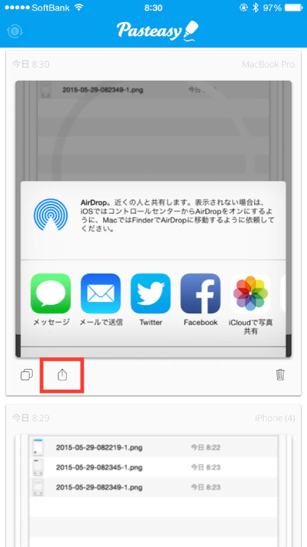 また、同期したクリップボードは、改めて Twitter や Facebook でシェアすることもできます。