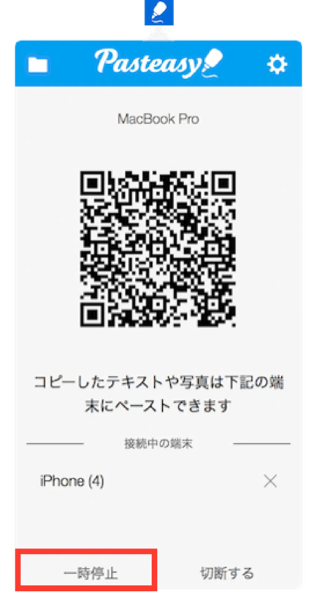 クリップボードの自動同期を一時的に停止したい場合は、「Pasteasy」を開いて、「一時停止」をクリックします。これで、クリップボードの同期がストップします。
