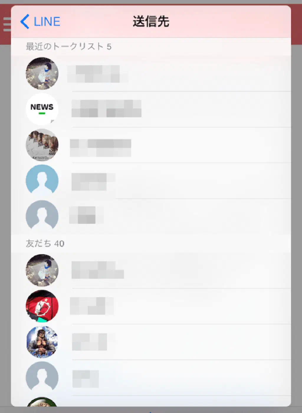 LINEの友達一覧が表示されますので、Webページを共有したい相手を選択してタップしてください。残念ながら複数人まとめて送信することはできません。