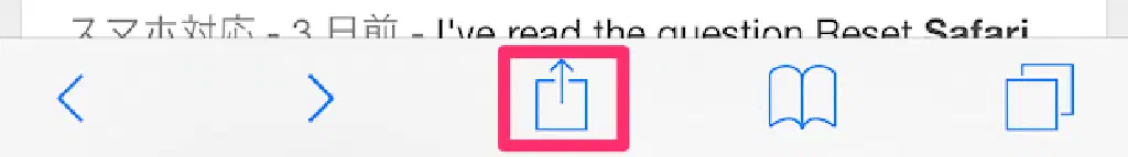 たとえば、Safariを開くと下図のようなメニューバーを目にすることがあると思います。下準備として、このメニューの中から「共有」(赤い四角で囲った)アイコンをタップしてください。