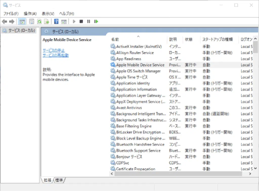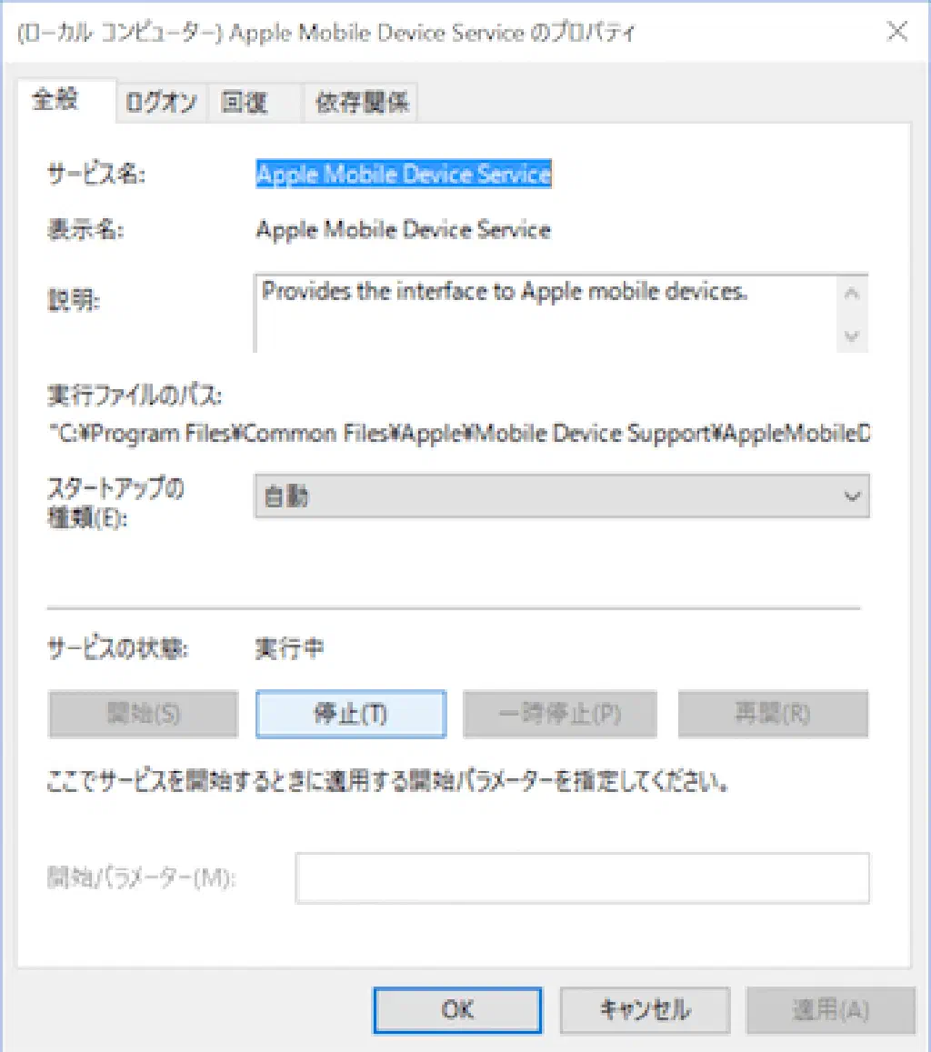 右クリックでプロパティを開き、サービスを「停止」した後、「開始」します。そして、PCを再起動しましょう。