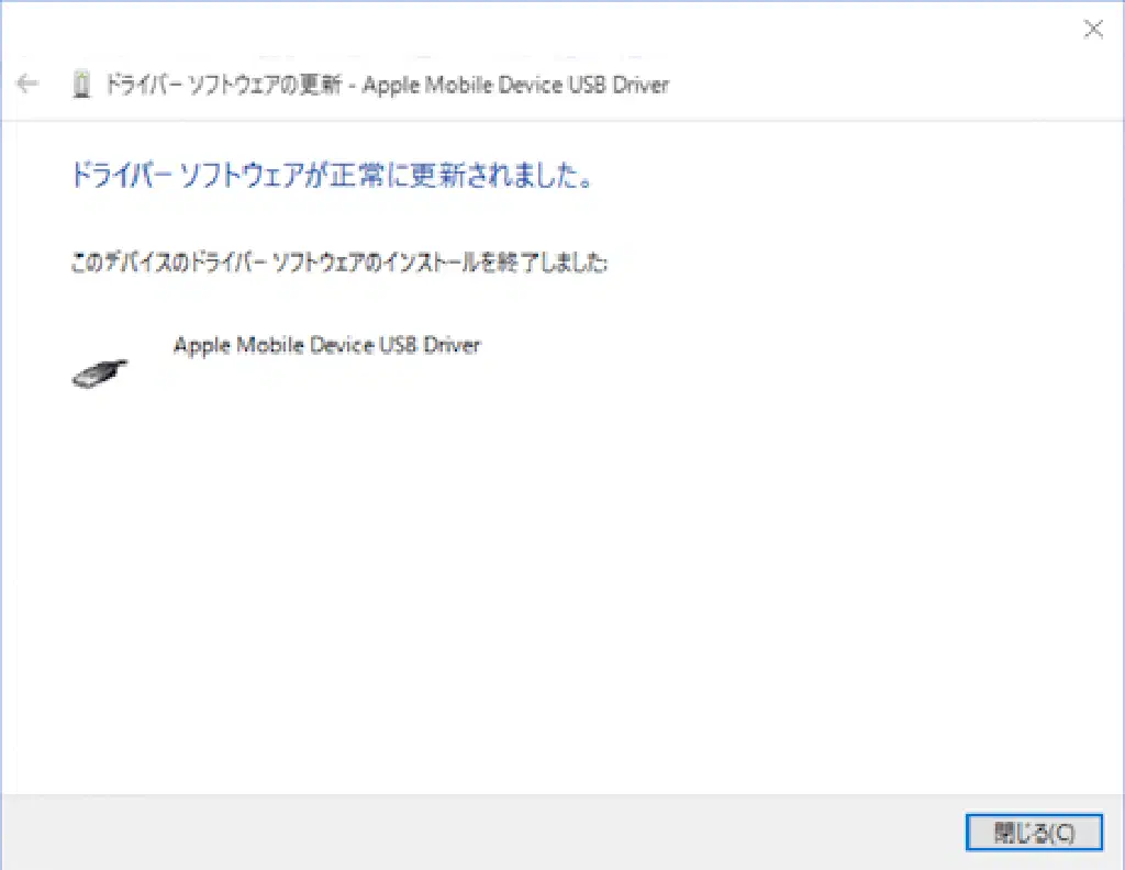 「ドライバーソフトウェアが正常に更新されました」と表示された場合は、正常にドライバーがインストールされています。