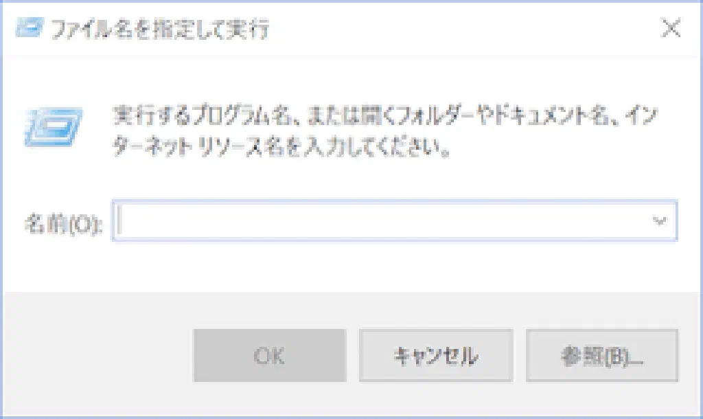Windowsキー + Rを押して、「ファイル名を指定して実行」を開きます。「名前」欄に以下を入力します。