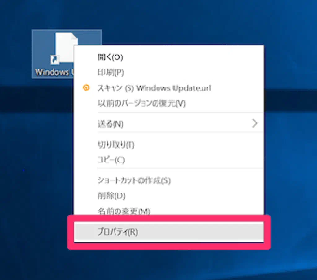 デフォルトのショートカットのアイコンは味気ないため、「それっぽい」アイコンに変更しておきましょう。ショートカットを右クリックして「プロパティ」を選択します。