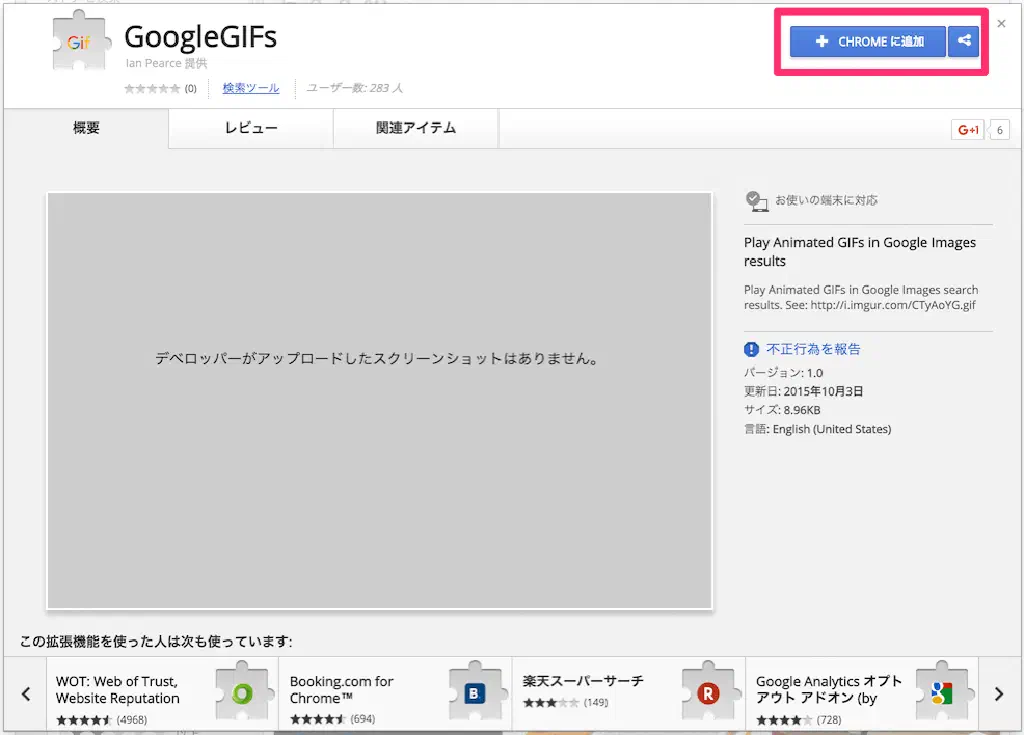 Google画像検索は非常に便利ですが、残念なことにデフォルトではGIFアニメは再生してくれません。それを解決してくれるのがGoogle Chromeの拡張機能である「GoogleGIFS」です。