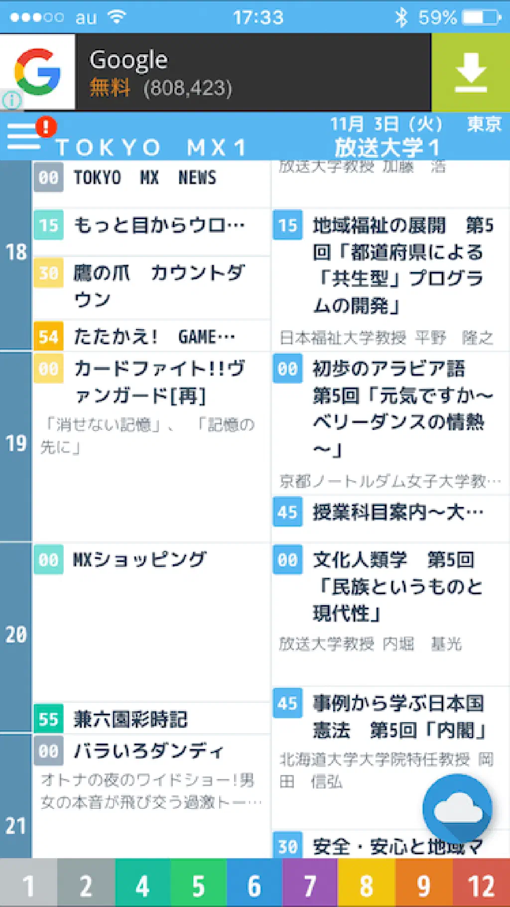 画面上部の広告がやや邪魔ですが、将来のアップデートで広告を削除できる機能が実装されるのが待ち遠しいところです。私はこれで見たいテレビ番組を一切見逃すことがなくなったため、皆さんも是非お試しください。