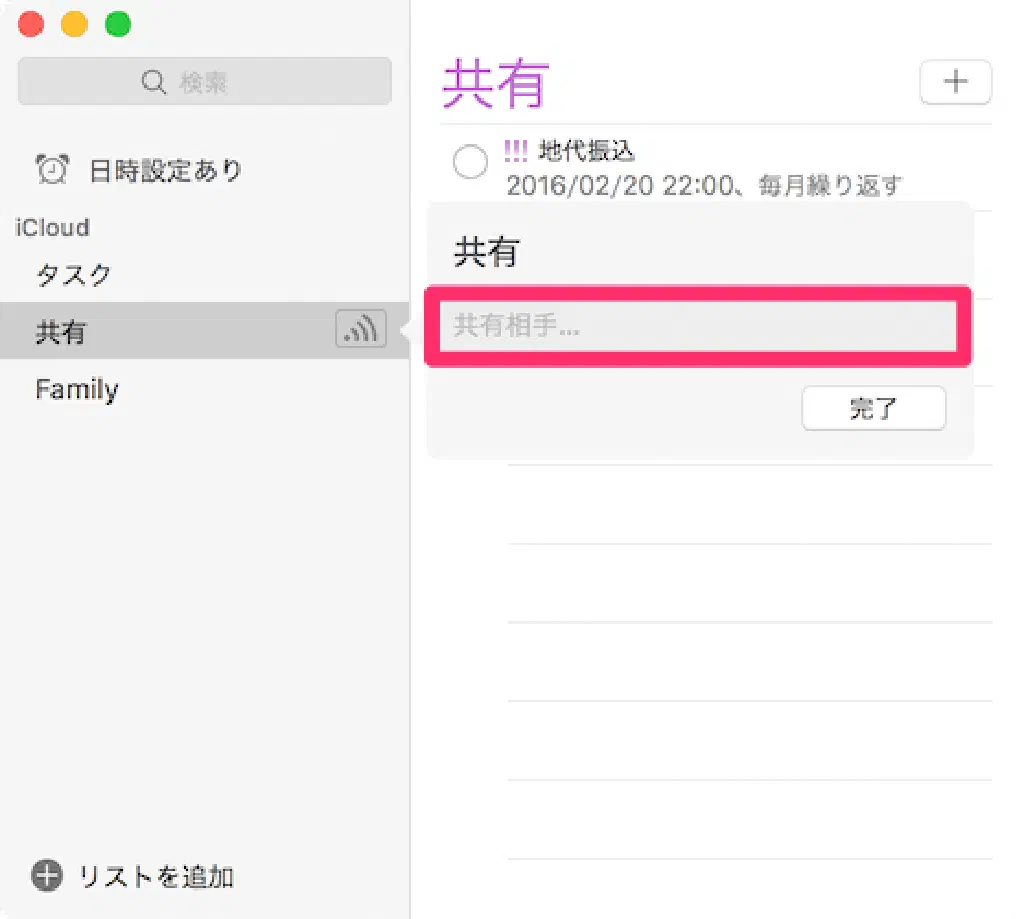 補足:リマインダーの共有