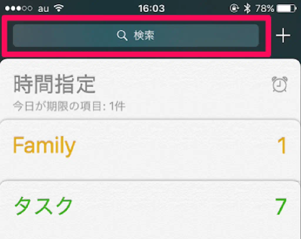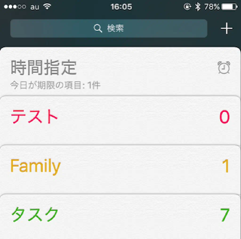 リストやリマインダーが増えてくると、どのようなリマインダーを登録したか思い出すのに苦労することがあります。そのような場合は、画面最上部の「検索」にキーワードを入力することで、リストを横断してリマインダーを検索できます。