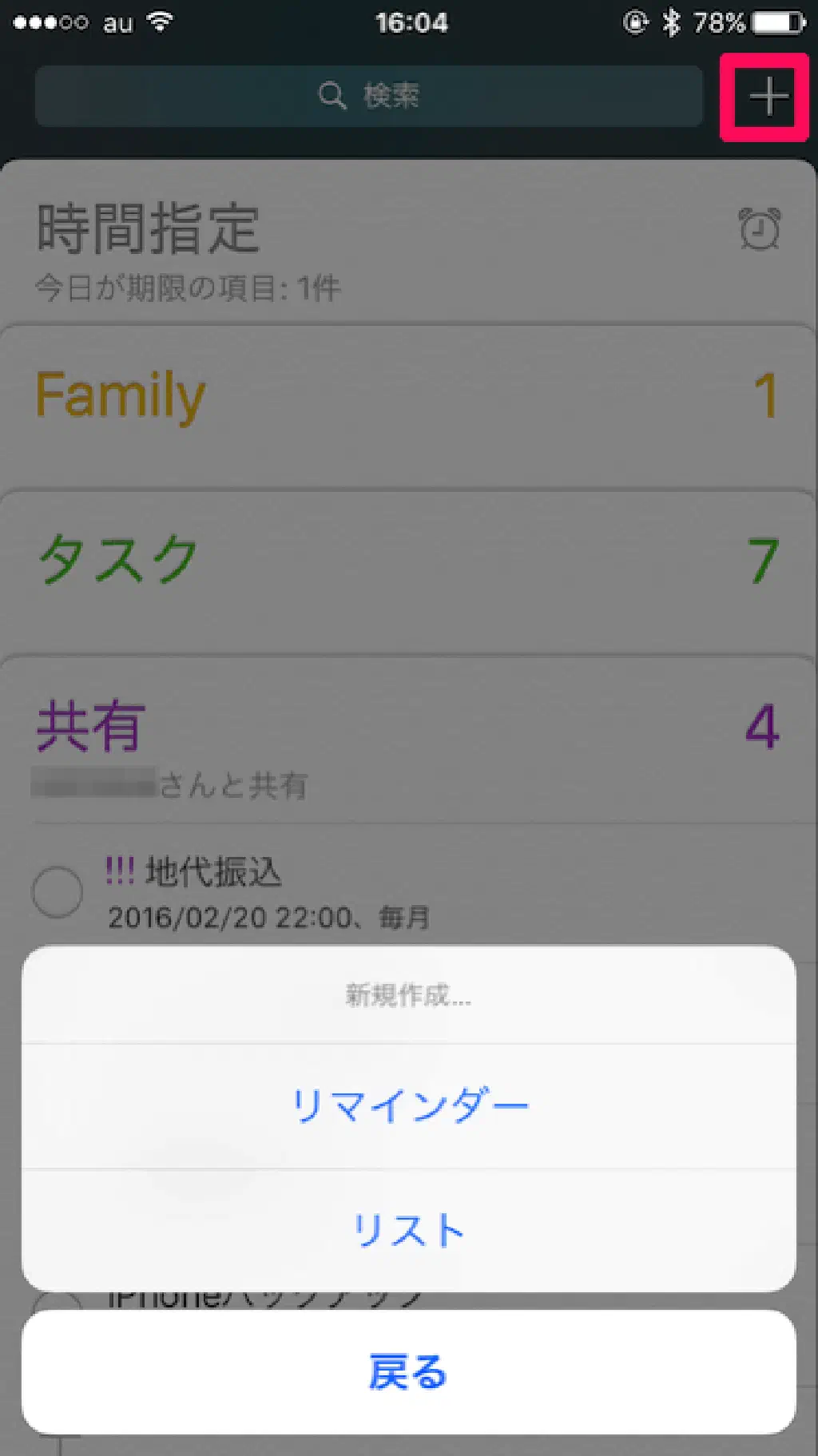 リマインダー、リストの作成