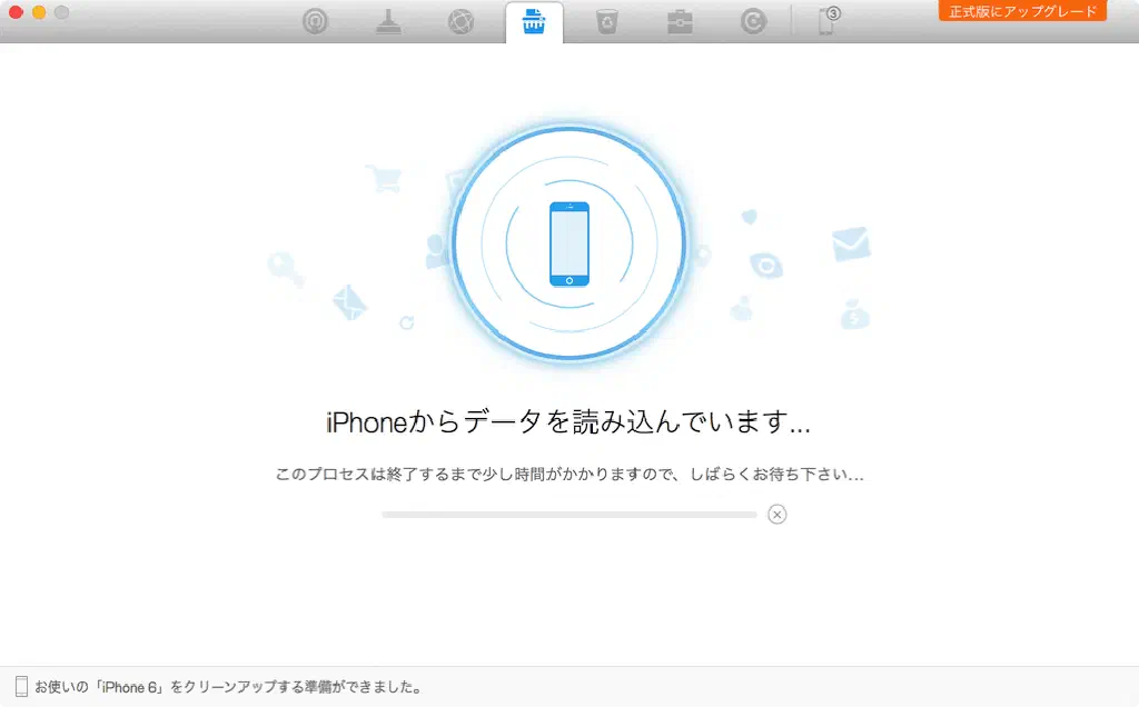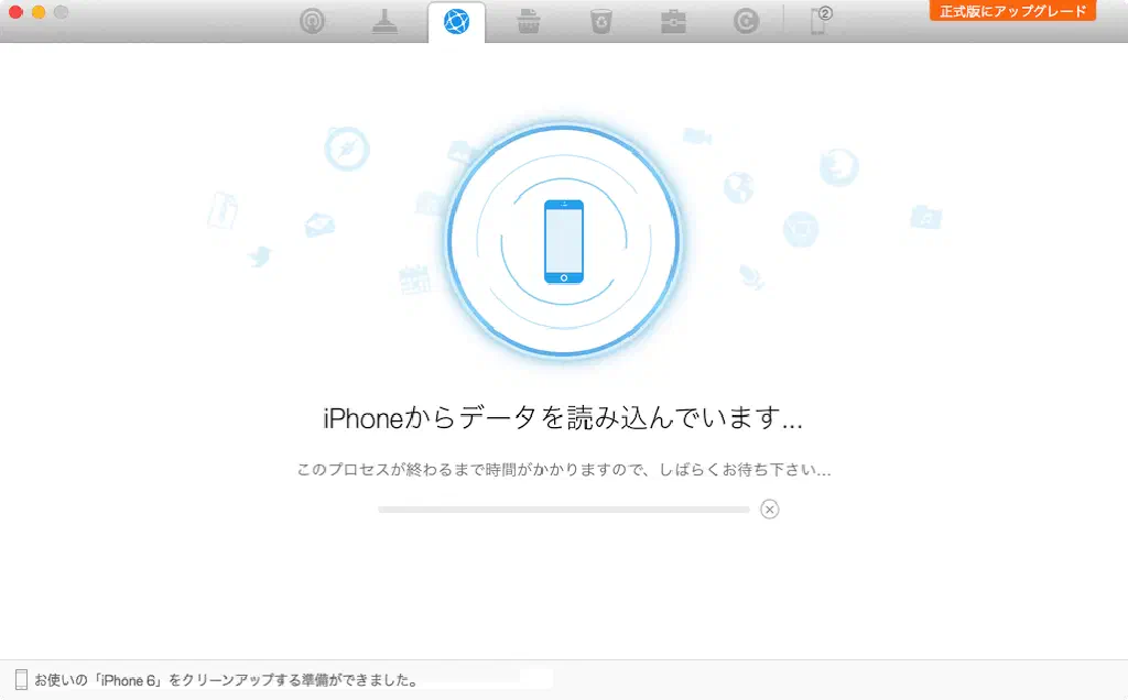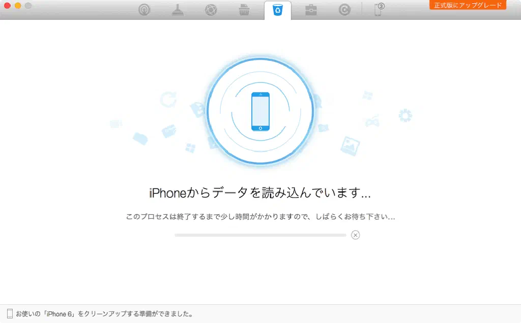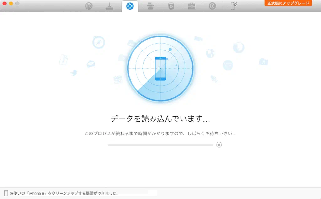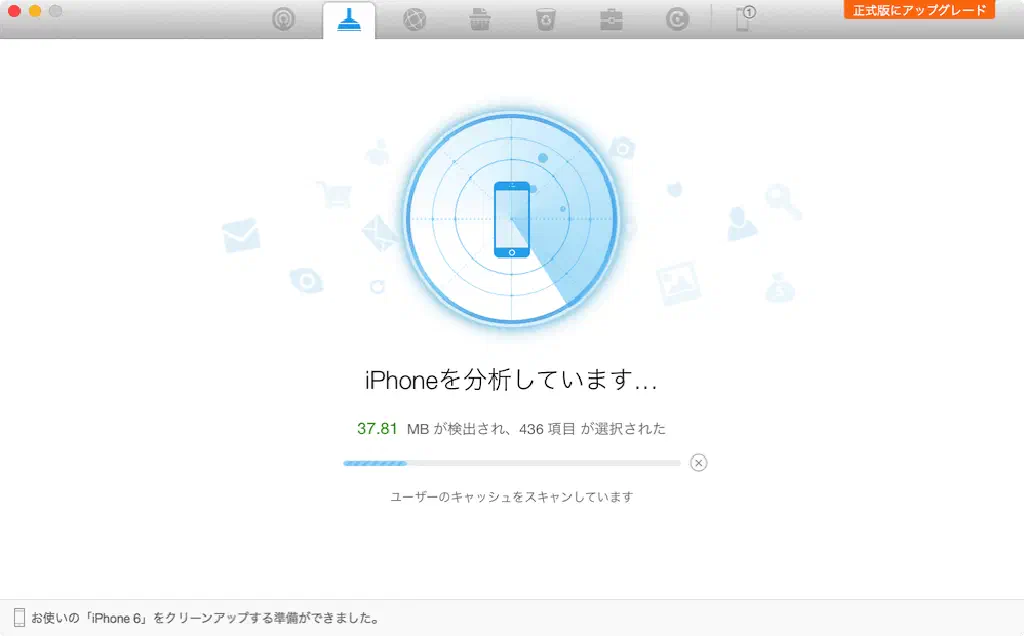 iPhoneに蓄積されている不要ファイルのスキャンが始まります。