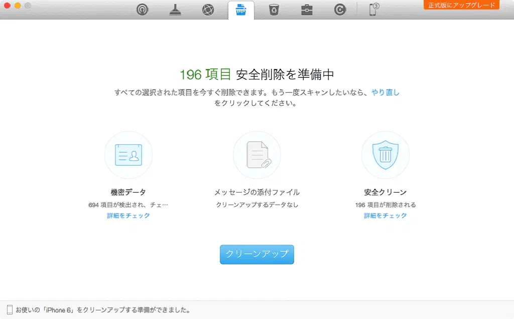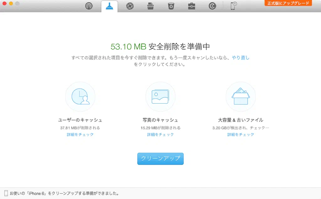 一部の機能を使用するためには、iPhoneの復元作業を必要とするなど、やや敷居の高い機能も多いため、サイレントクリーン、クイッククリーンなど手軽に実行できる機能を積極的に使用していくことをオススメします。