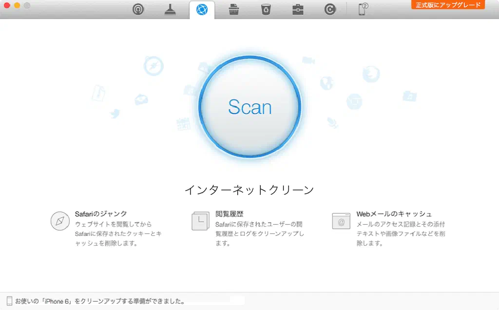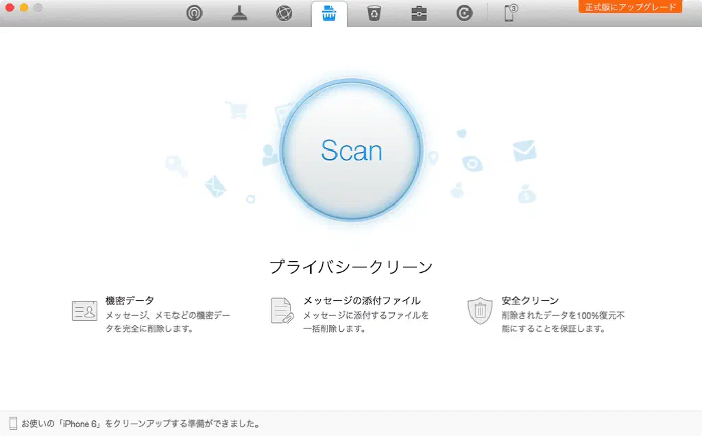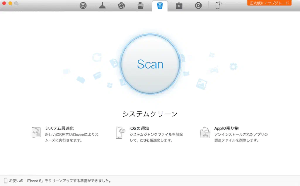 クイッククリーン機能と同様にiPhoneとPCをUSBケーブル経由で接続します。「Scan」をクリックします。