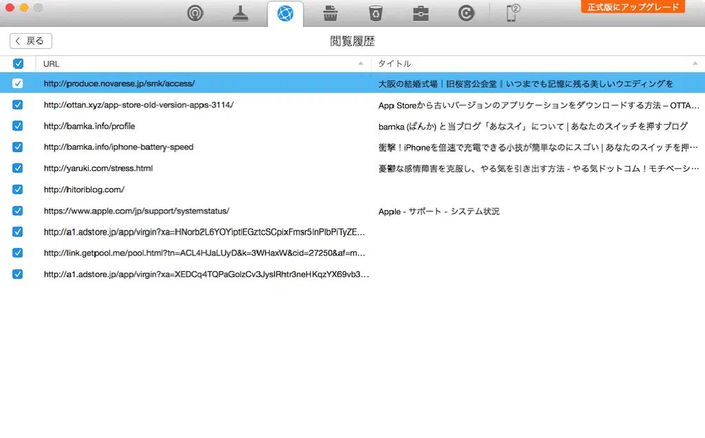 続いて、プライバシークリーン機能で削除できる項目は以下の通りです。