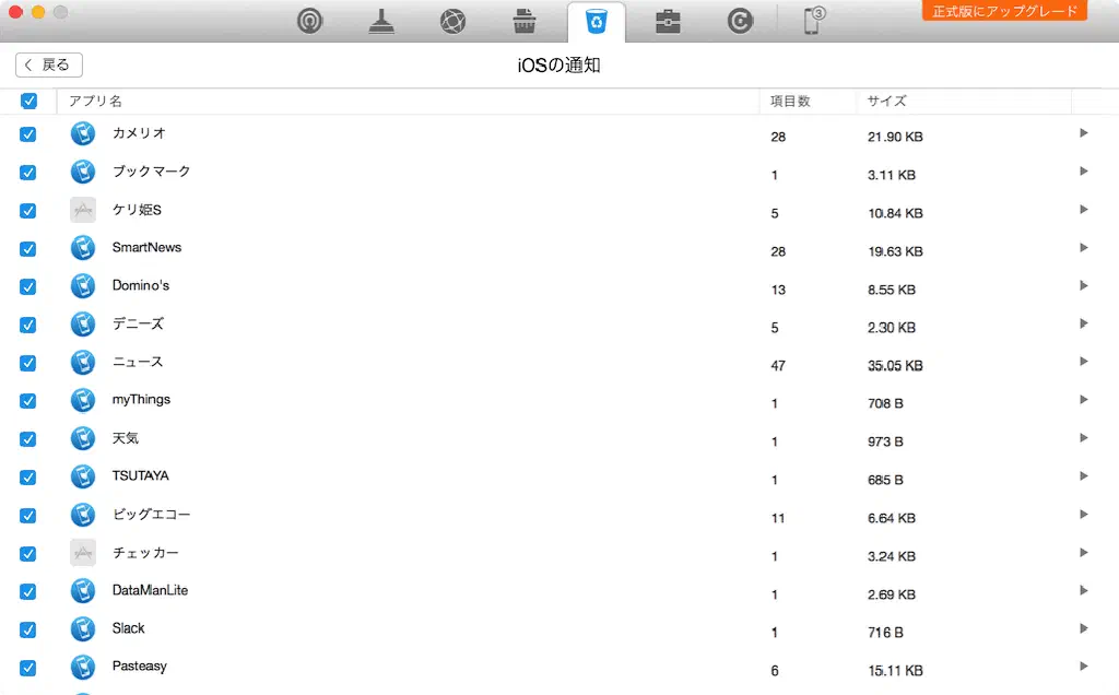 また、「iOSの通知」では通知情報の残骸を削除できます。