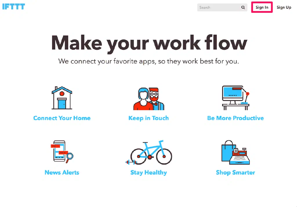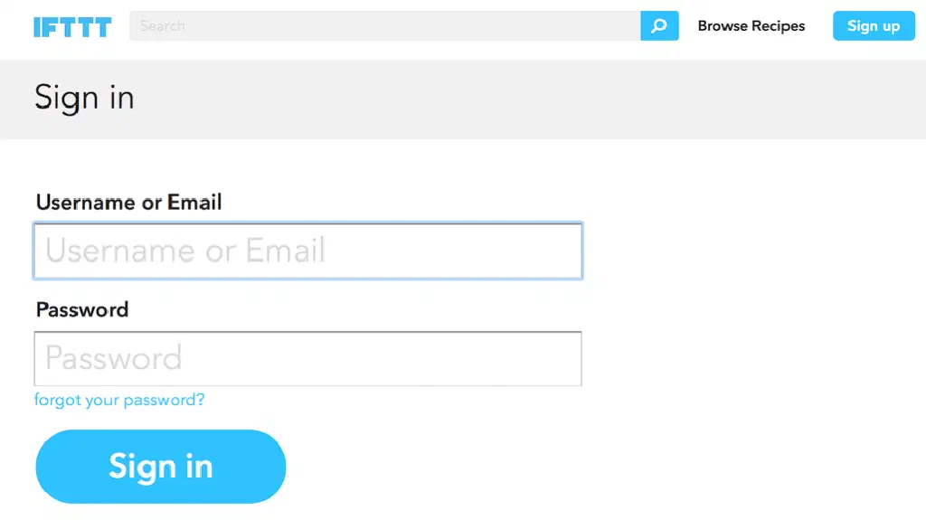 IFTTT のレシピを作成するには、以下のリンクにアクセスし、画面最上部の「Sign in」からサインインします。