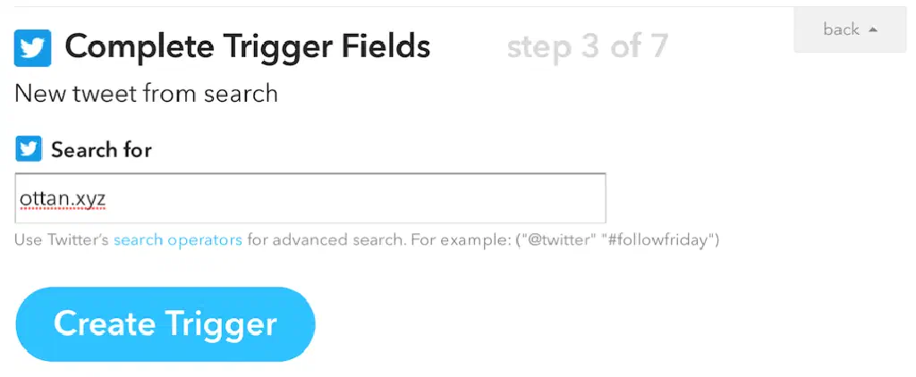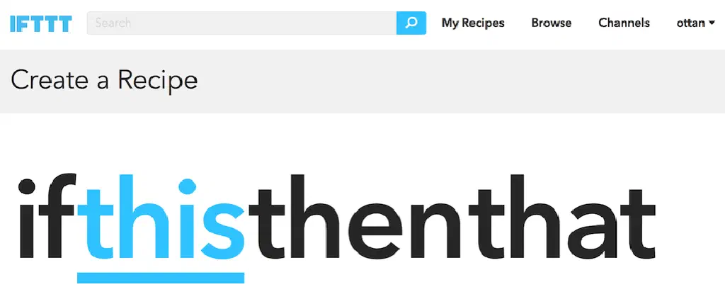 トリガーとして利用するチャンネル(今回の場合は、Twitter)を選択するために、「this」をクリックします。