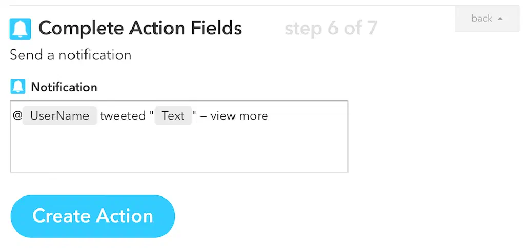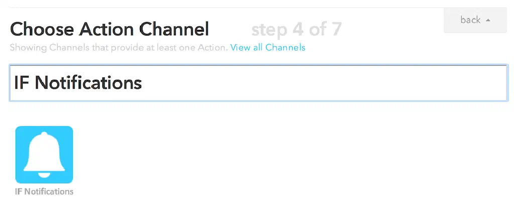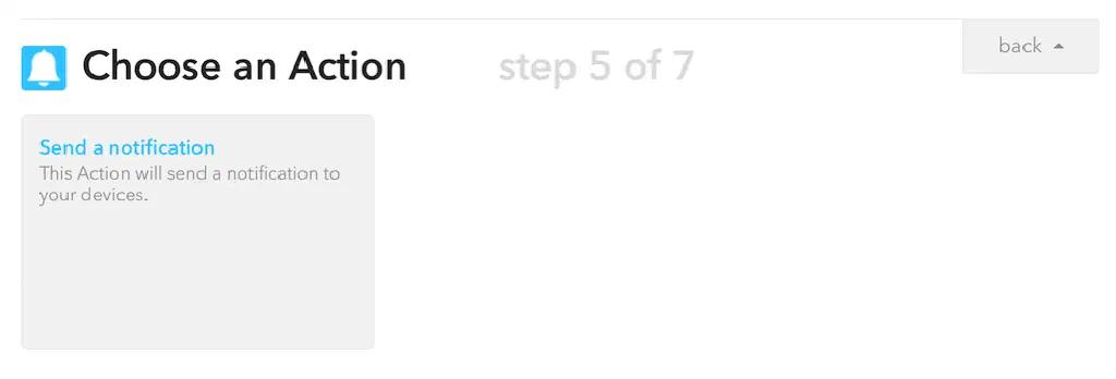 アクションとしては、Gmail を一工夫!Evernote ベーシックプランで Evernote メール転送機能の制限を回避する方法でもご紹介したように、Evernote など任意のアクションで構わないのですが、今回は簡易にするために、通知(IF Notifications)アクションを選択します。