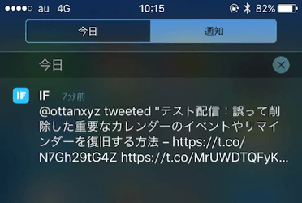 実際に、弊サイトでご紹介した記事である、誤って削除した重要なカレンダーのイベントやリマインダーを復旧する方法を、Twitter でテスト配信してみたところ、このように IF アプリによって通知されました。ツイートに短縮 URL が使用されていても問題なく通知されます。