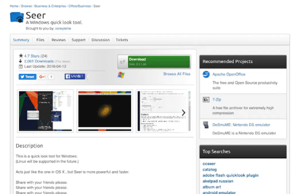 これと同等の機能を、Windows で実現したのが「Seer」です。