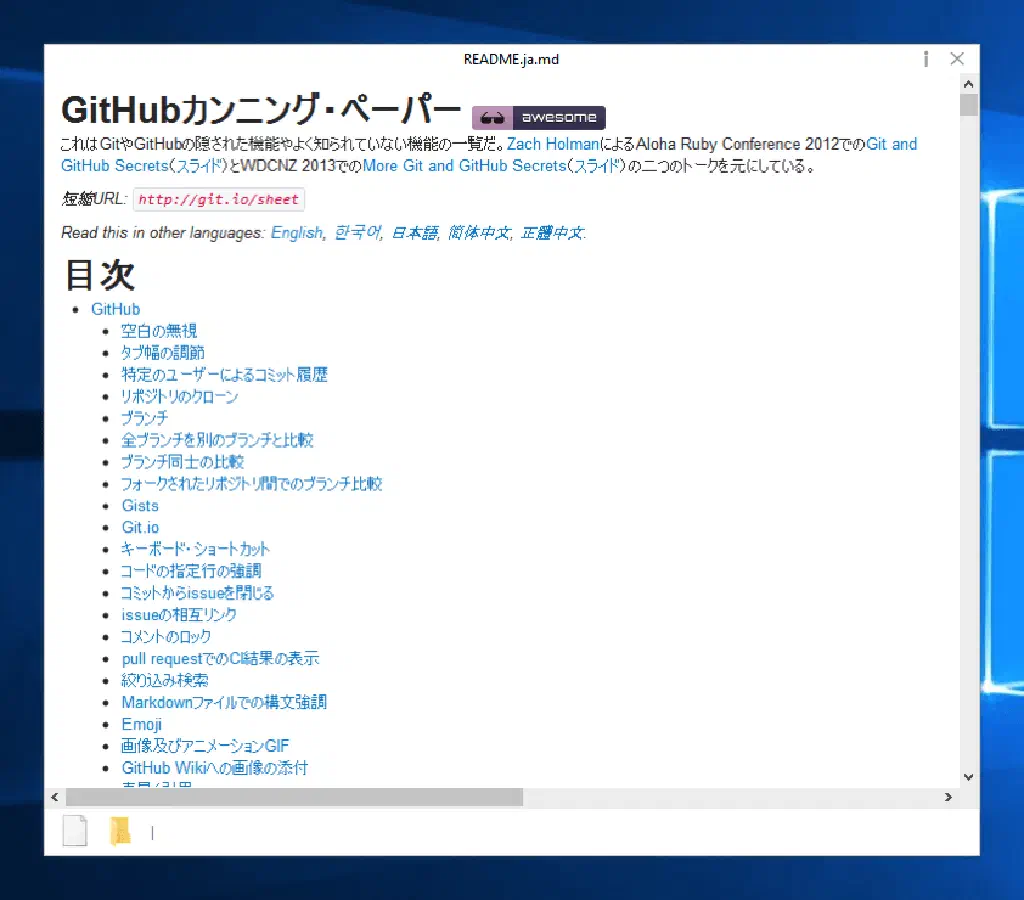 Google で検索する際に、「filetype:md GitHub」を指定して、最初に登場したのがこのファイルでした。