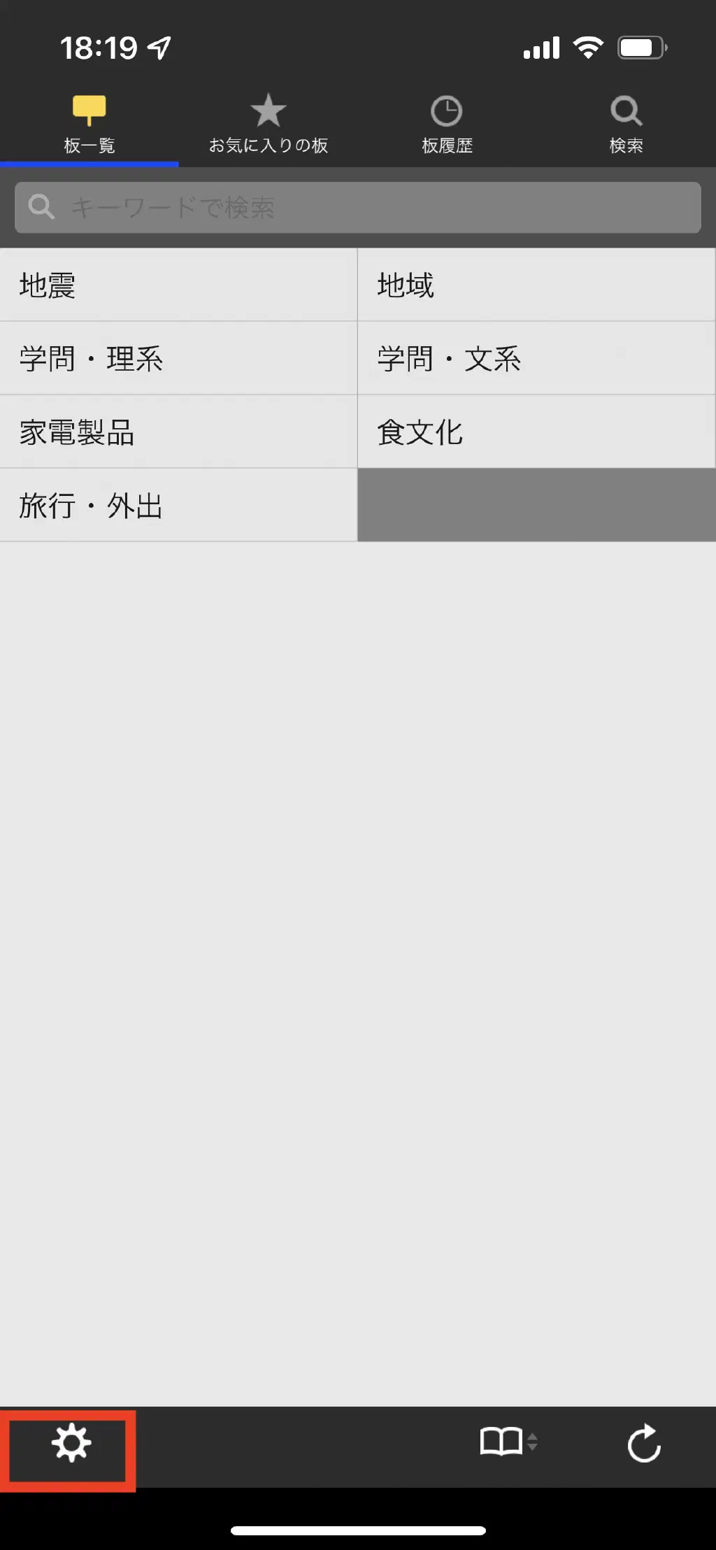 「板一覧」タブに戻り、右下のリロードをタップすると、すべての板が表示されるようになります。