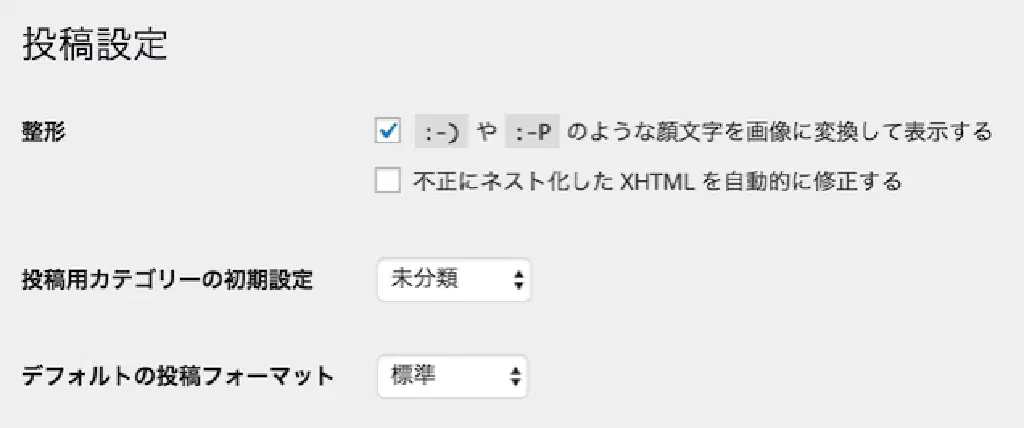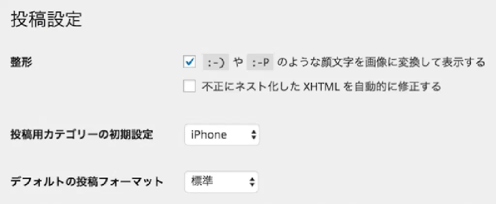 「投稿用カテゴリーの初期設定」が「未分類」となっています。これを既存の別カテゴリーに変更します。