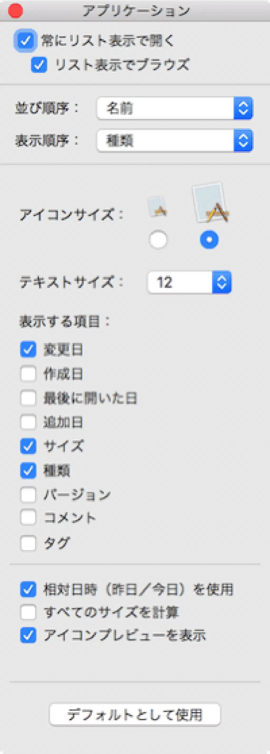 Finderの表示オプションの「デフォルトを使用」?
