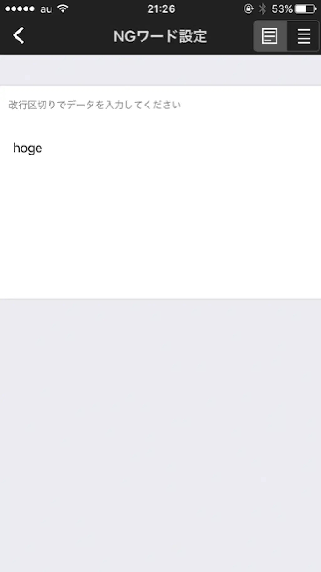 このように、NG にしたい文字列を改行区切りで入力します。これで、同一板内で表示したくないレスに含まれるキーワードを一元管理できます。便利ですね(注:上記の文字列はあくまでサンプルです。文字列の検証のために使用しました)。