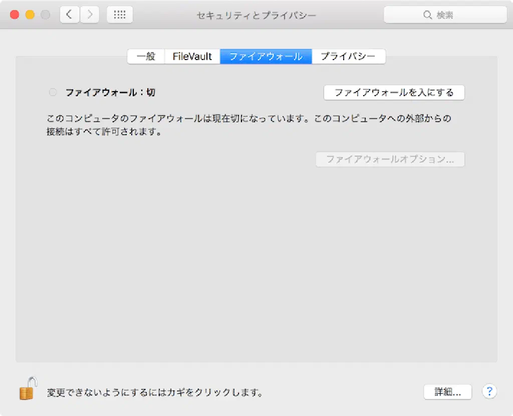 外部からの接続をすべてブロック
