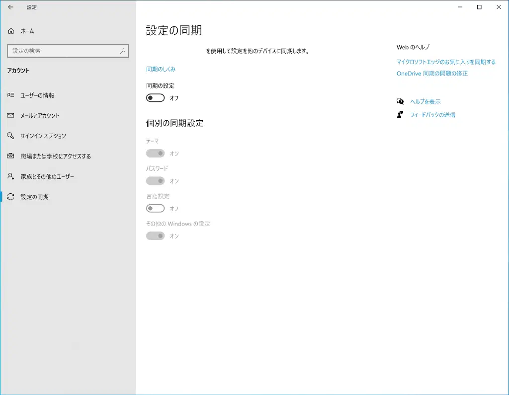 設定の同期を無効化する
