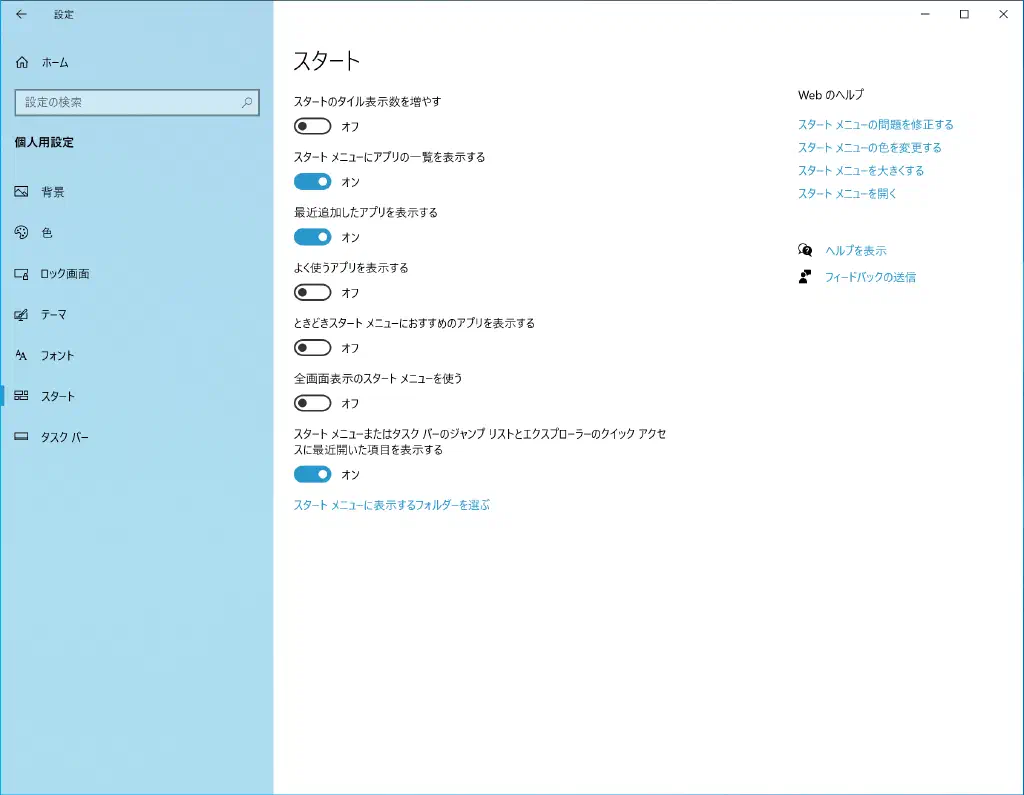 スタートメニューから広告を削除する