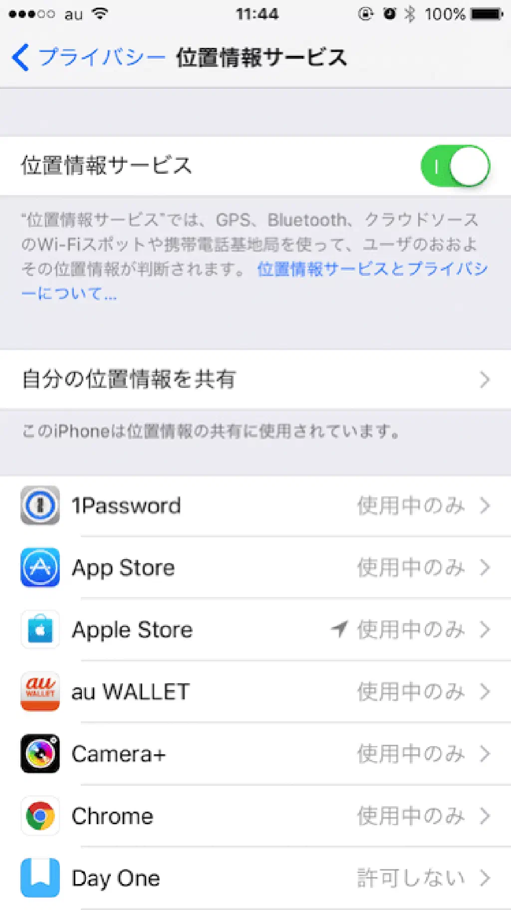 使用していない位置情報サービスをオフにする