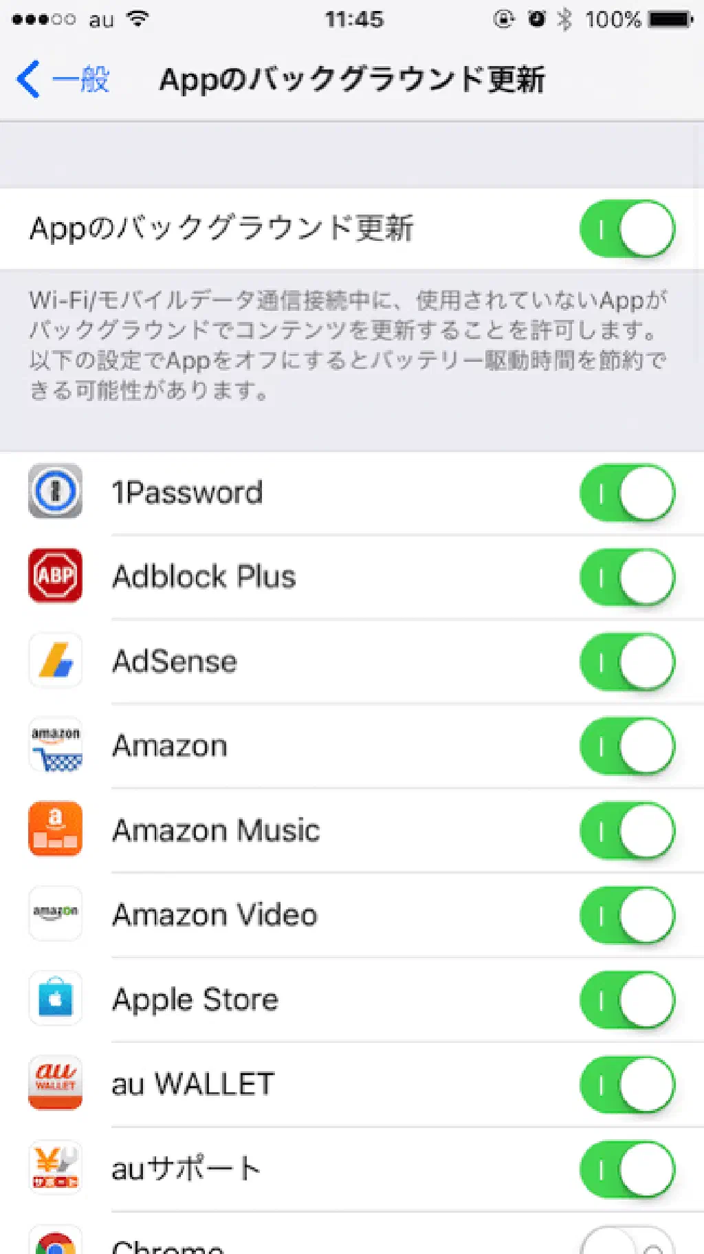 バックグラウンドのアップデートを停止する