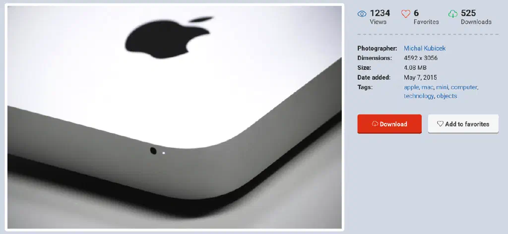 クリックすると、画像の配布元である「StockSnap」が表示されますので、今回の場合は赤い「Download」ボタンをクリックすると、画像ファイルをダウンロードできます。
