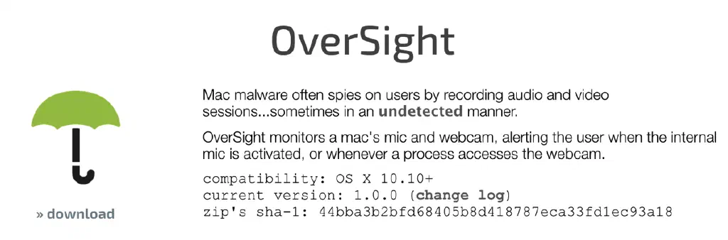 今回は、そのようなユーザのために開発された、iSight カメラの不正利用を防止するための Mac のソフトウェア「OverSight」をご紹介します。アプリをダウンロードして起動しておくだけで使用できる便利なソフトウェアです。