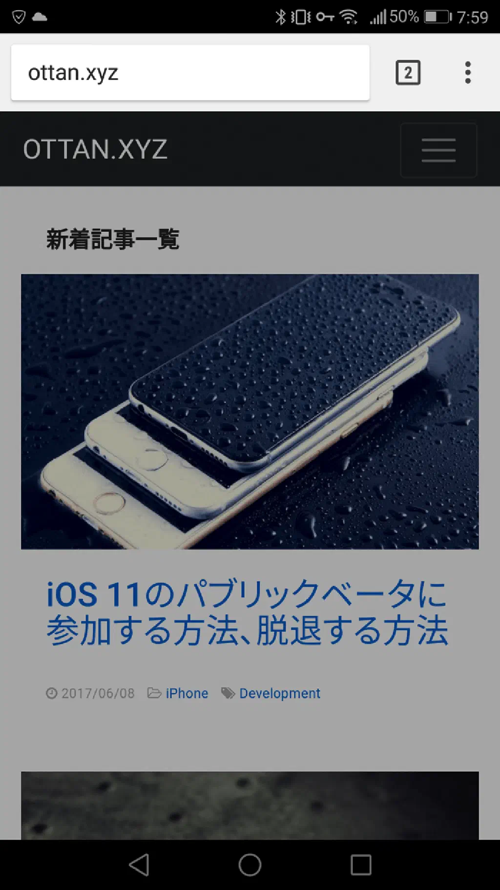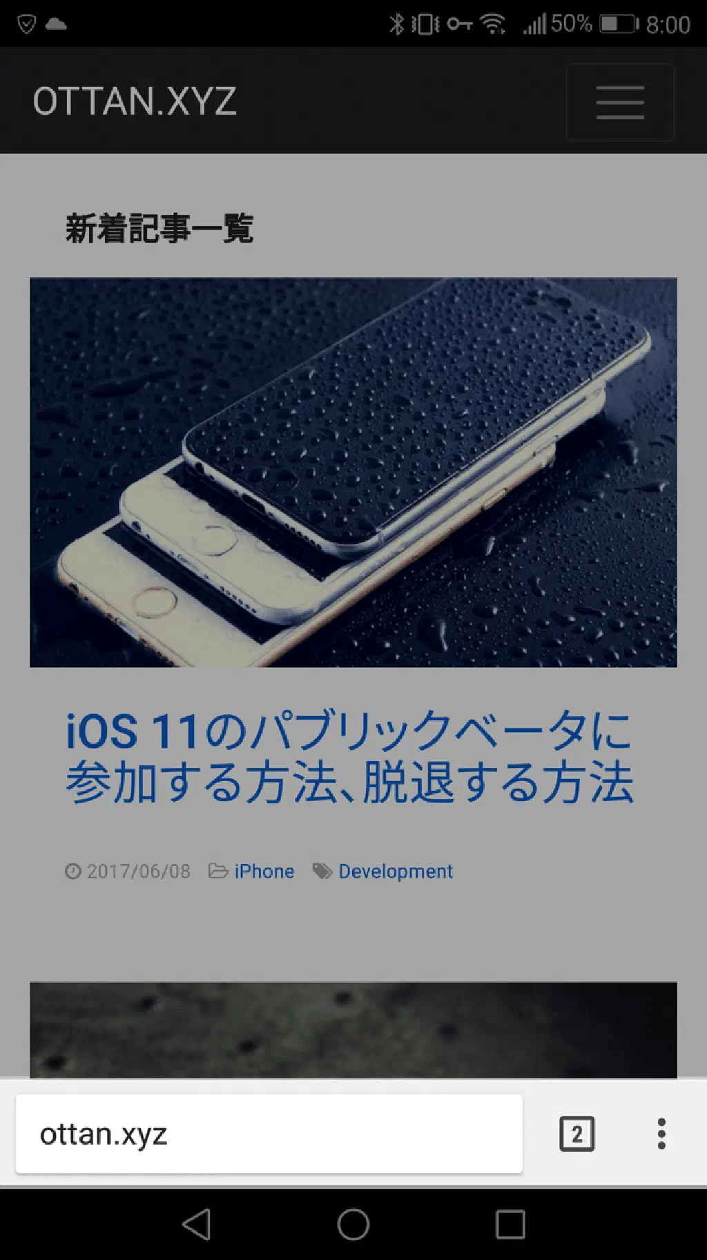 再起動後、これまでChromeの上部に固定されていたメニューバーが画面最下部に表示されていることがわかります。Androidを操作するためのホームボタンと同等の位置に表示されるようになるため、Chromeのメニューバーが片手で届く位置に固定されるのではないかと思います。デフォルトのChromeのメニューバーが使用しづらいと感じる場合には、本機能をお試しください。