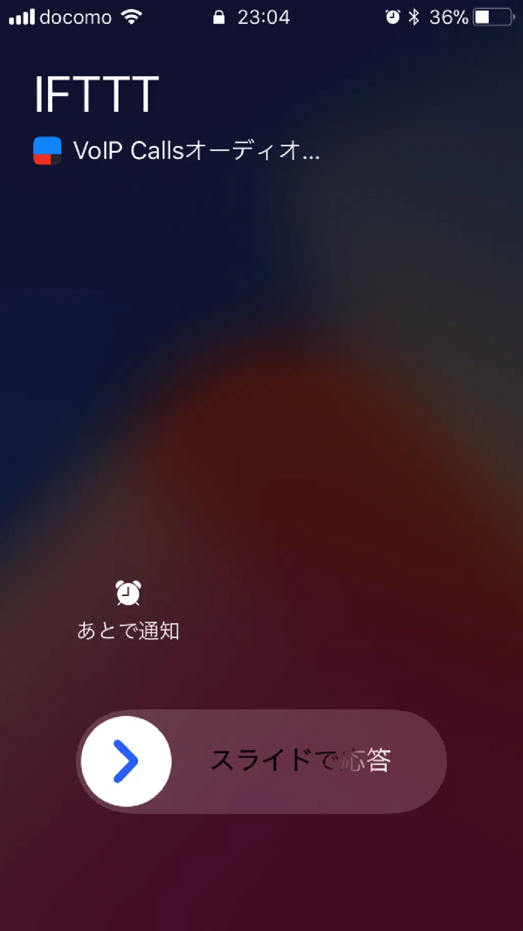 すると、IFTTTをインストールしているデバイス上で上記のようにIFTTTからの自動着信があります。応答すると、先ほど「VoIP Calls」のメッセージに設定した日本語が流暢に流れます(もちろん、英語も)。