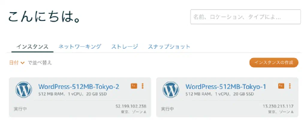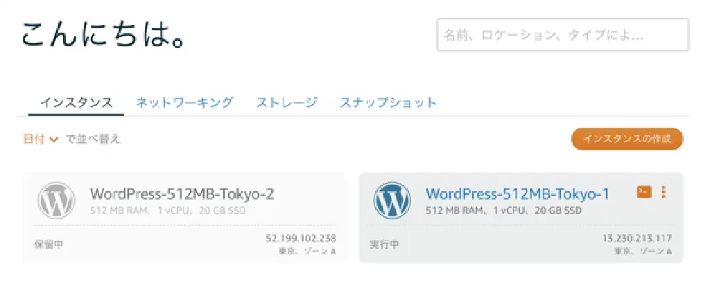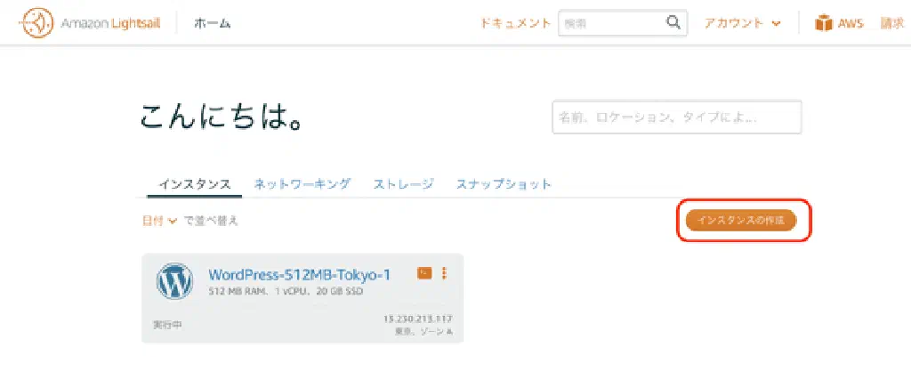 では、AWS Lightsailで仮想インスタンスを構築してみましょう。