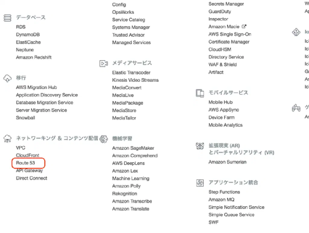 DNSサービスは、AWSのRoute 53を使用します。なお、今回はすでに他のドメイン取得サービス等でドメインを取得していることを前提としますが、Route 53でドメインを新規に取得することもできます。その場合、すべての設定をAWSに任せることができるので簡単です。