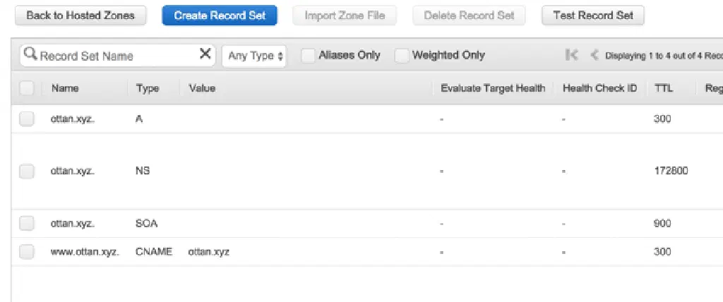 続いて、「Create Record Set」と書かれた青いボタンをクリックします。
