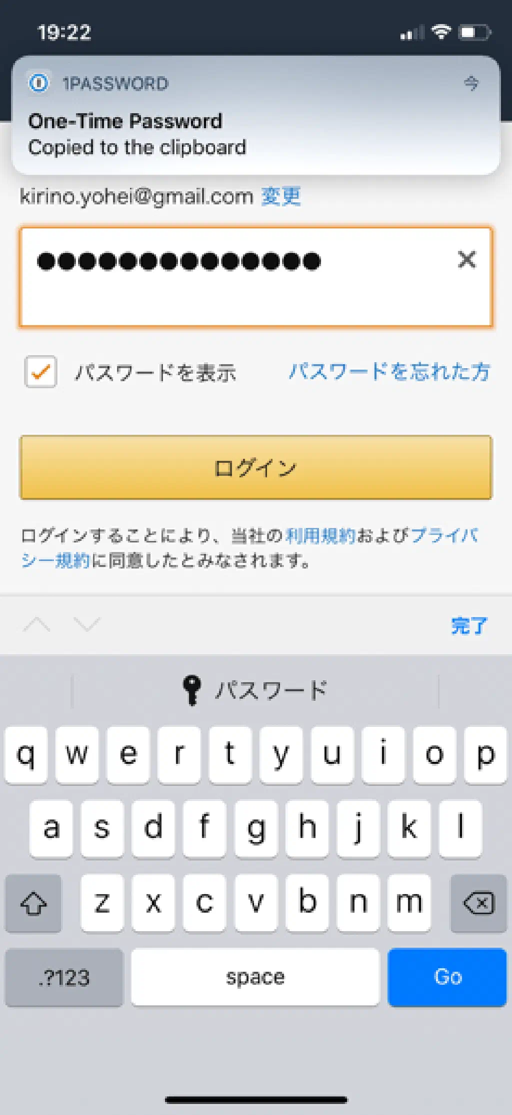 無事、パスワードがそのまま自動入力されました!また、画面上部に注目していただきたいのですが、パスワード入力とともに、クリップボードにワンタイムパスワードがコピーされた旨が表示されています。