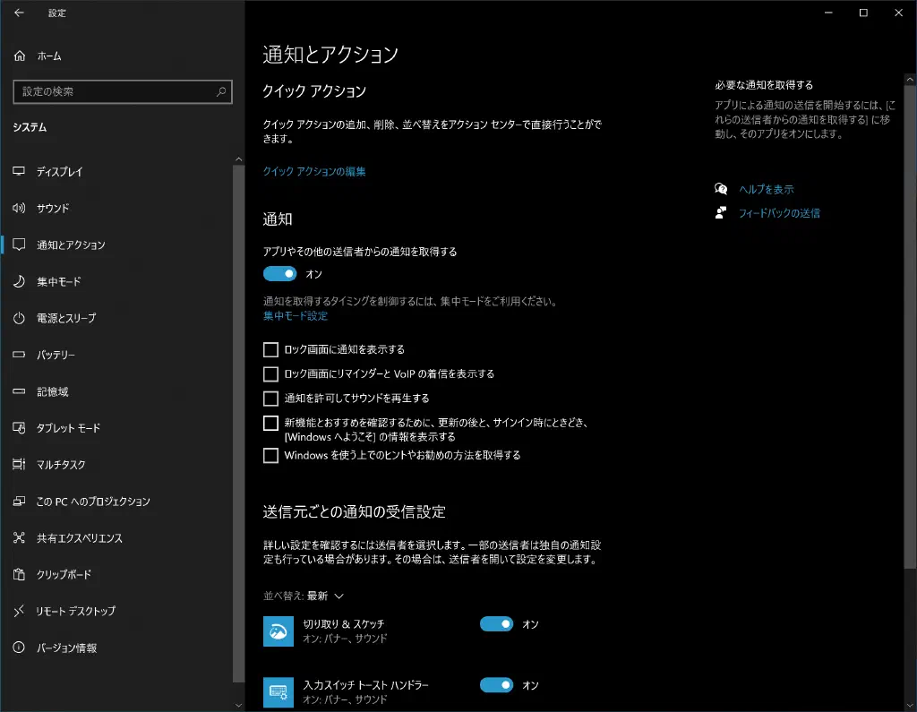 - 「Windows を使う上でのヒントやお勧めの方法を取得する」をオフ