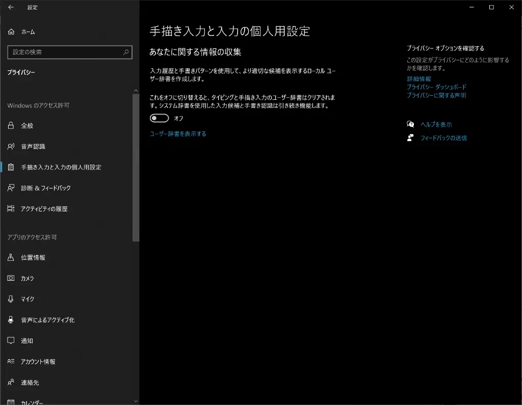 手描き入力にお世話になったことはないため、オフです。「手書き」ではなく、「手描き」であることに、Microsoftの「手入力」に対する強いこだわりを感じてしまいます。