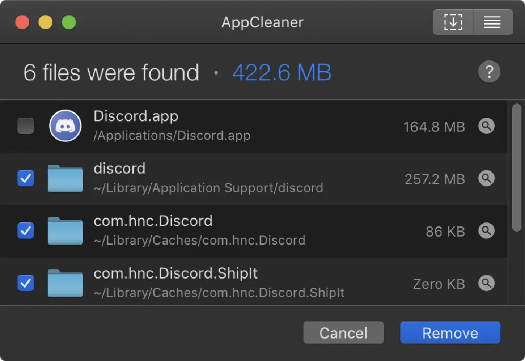 そのAppCleanerを応用すると、アプリケーションを簡単に初期化できます。AppCleanerに対象のアプリケーションをドラッグ&ドロップして、「.app」のチェックのみ外し削除します。こうすることで、本体を残して関連ファイルをまとめて削除できます。