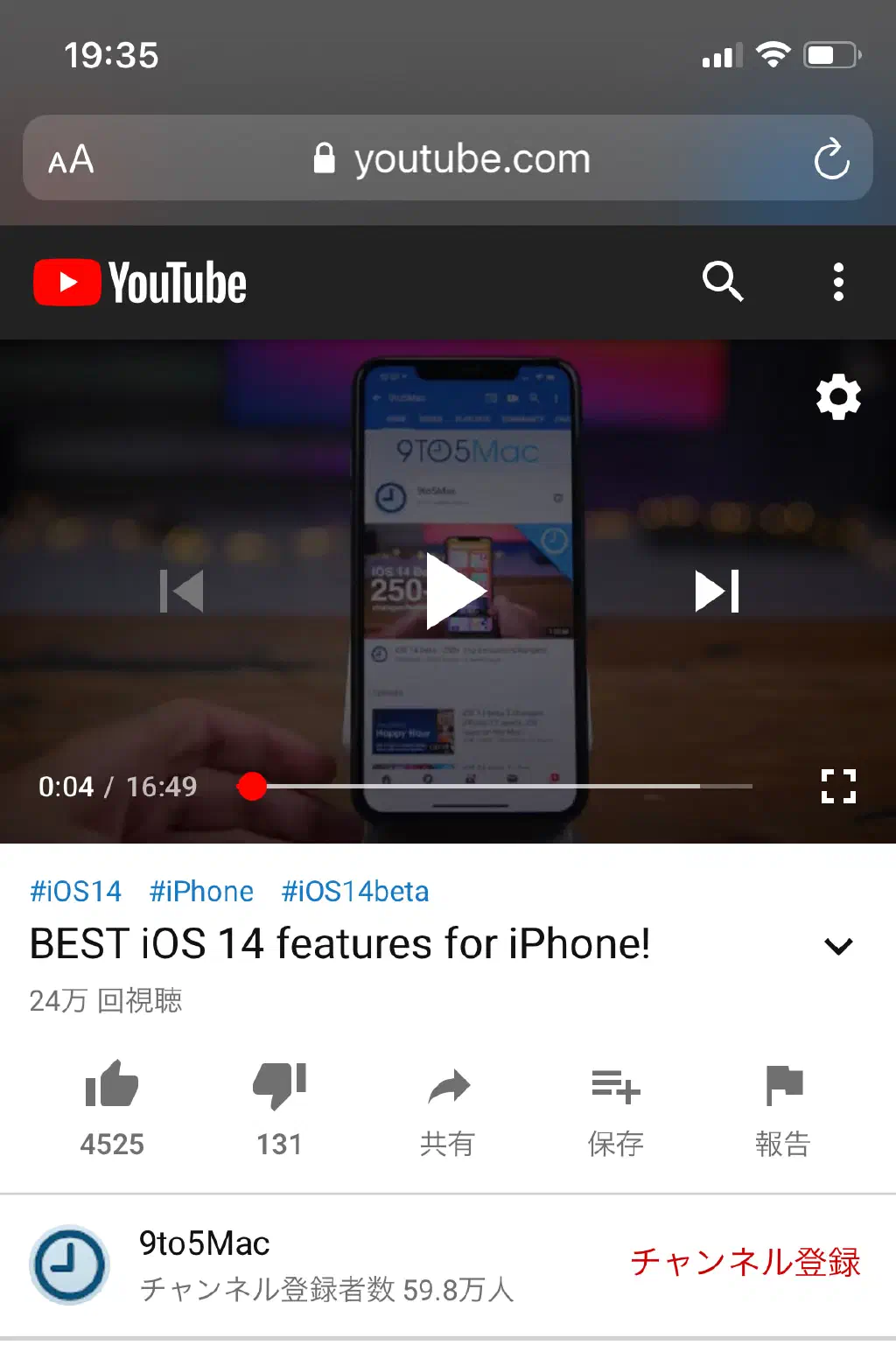 YouTubeというよりも、ブラウザで埋め込み動画をピクチャ・イン・ピクチャにて再生する方法です。なお、動画の埋め込み方法によっては、ピクチャ・イン・ピクチャで再生できない場合もあるようです。