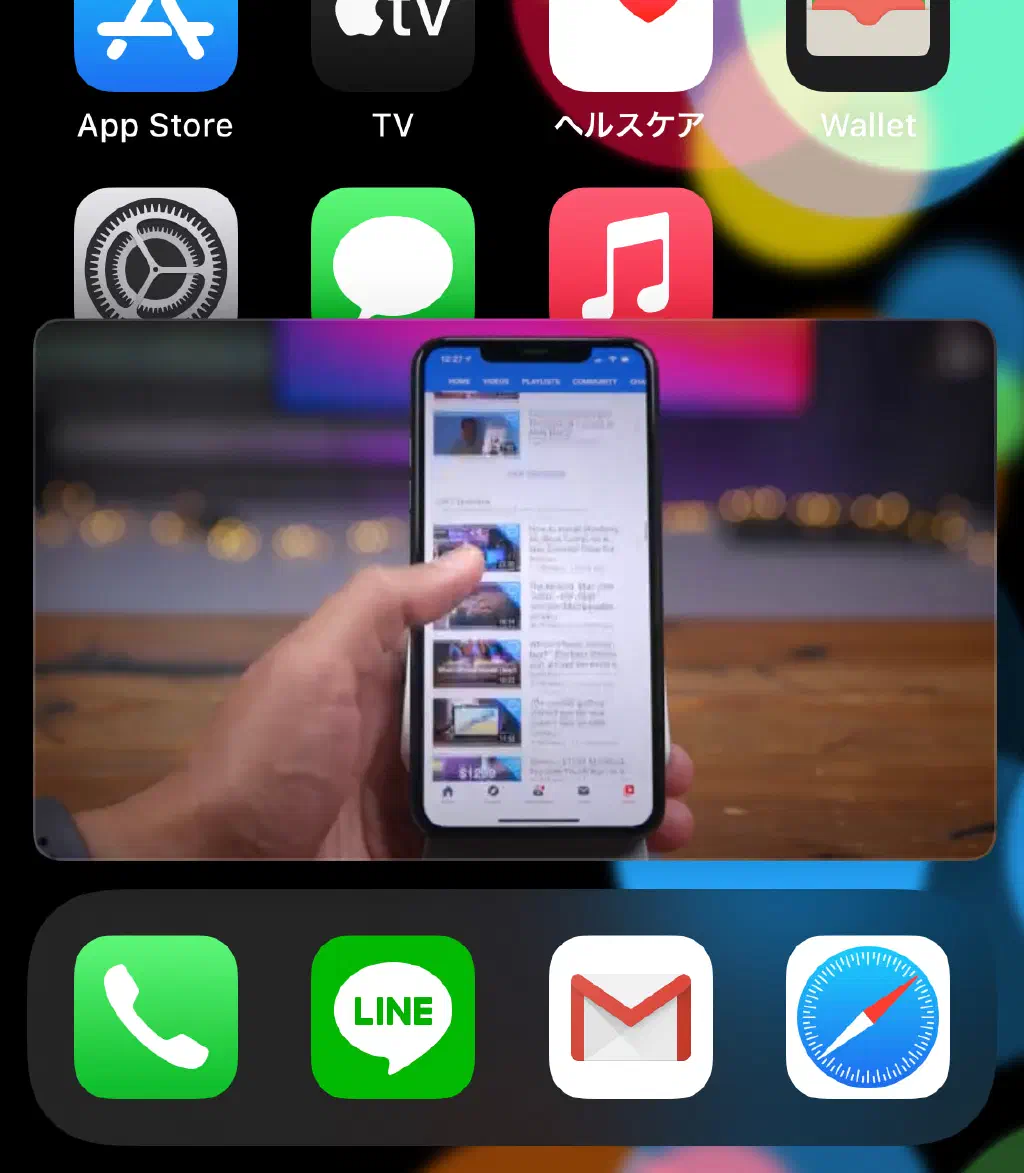 アプリが対応している場合、上記と同様の操作でピクチャ・イン・ピクチャで表示できます。フルスクリーン状態にして、ホーム画面に戻れば良いだけです。